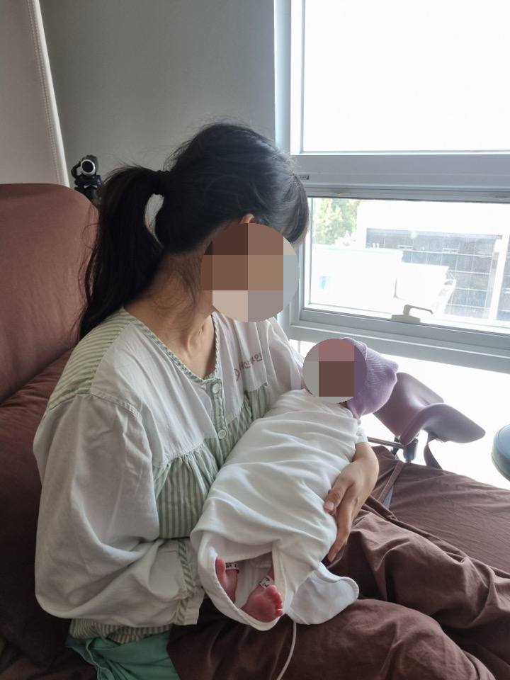 옆에서 지켜보던 남편은 첫째에 비해 훨씬 수월하게 낳은 것 같다고 하더라고요.