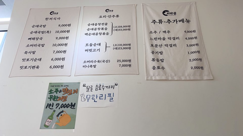 치락골은 문지동에 위치한 순대요리 전문점입니다.