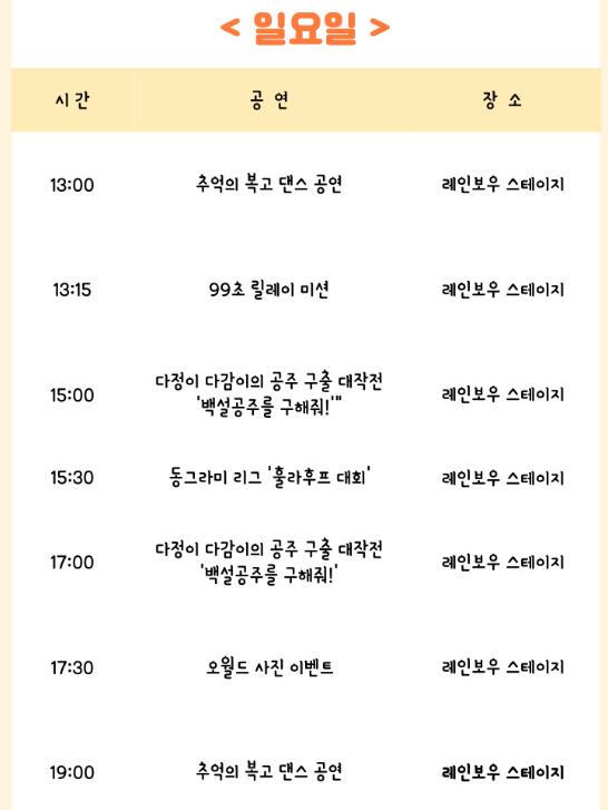 주말에는 평일에 비해 좀 더 많은 공연이 진행돼요.