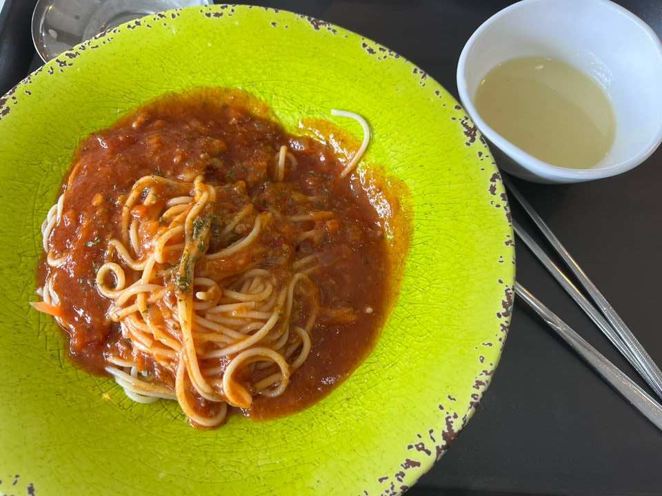 저희는 등심돈가스와 미트토마토스파게티, 공깃밥을 시켰습니다.