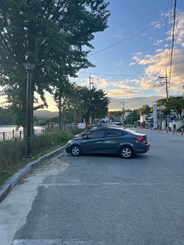 네비에 방동저수지를 검색하고 가다 보면 도로변에 주차공간이 있는 것을 볼 수 있어요.