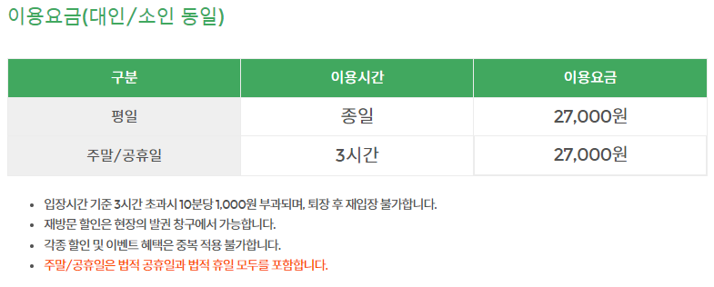 이용 요금은 대인/소인 모두 27,000원입니다.
