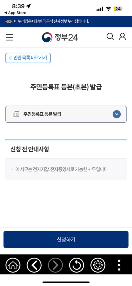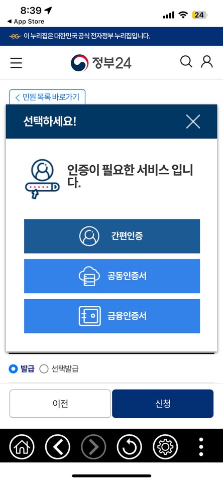 두 번째 방법은, 정부24 어플을 사용하는 것입니다.