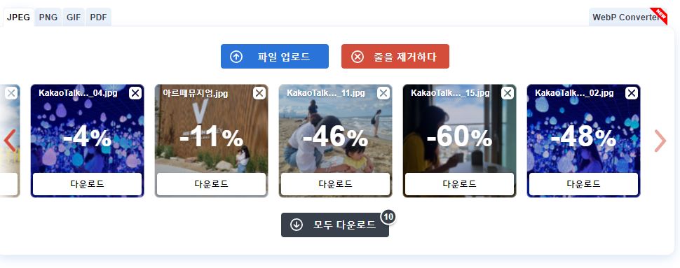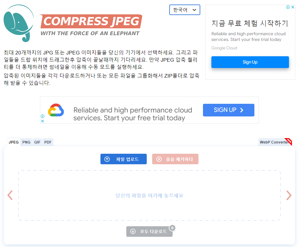 온라인으로 JPG 이미지들을 압축하기 (compressjpeg.com)
