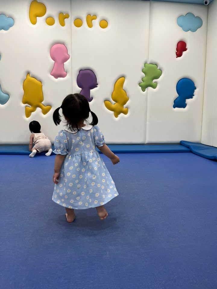 아기가 엄청 설레고 신나 하며 들어갔습니다.