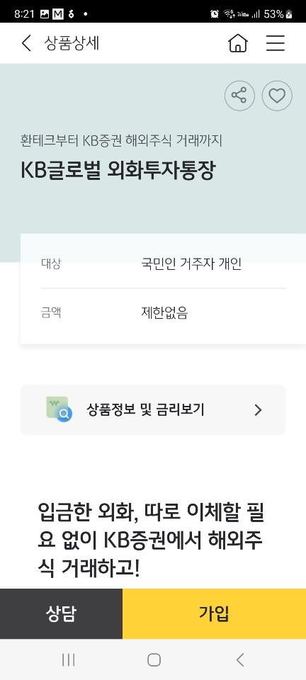 저는 KB글로벌 외화투자통장을 개설하였어요.