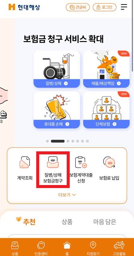 현대해상 어플로 아주 쉽게 청구 가능해요.