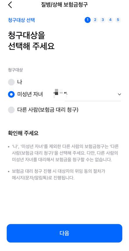 먼저, 청구대상에 자녀 이름과 주민번호를 입력해요.