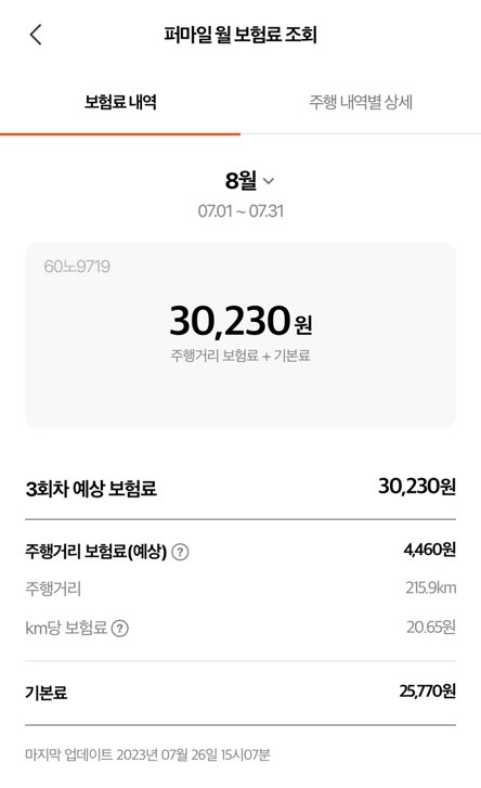 7월 보험료는 30,230원이 나왔습니다.