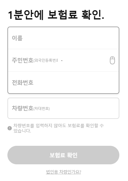 홈페이지 메인에 떠있는 1분 안에 보험료 확인에