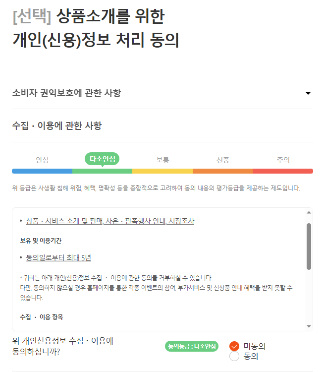 다음 화면은 선택이라 미동의를 눌렀습니다.
