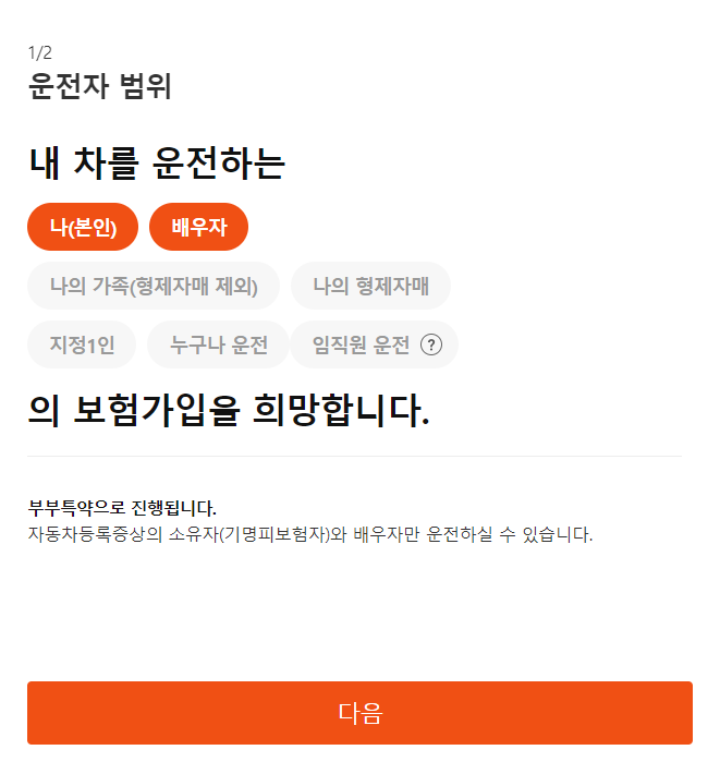 보험 가입 조건 입력 화면으로 넘어갑니다.