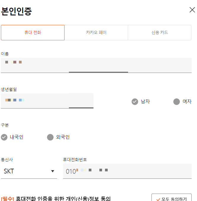간단히 본인인증 절차를 거치면