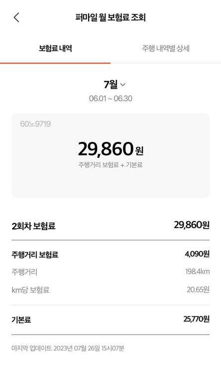 어플에서 실시간으로 보험료 확인이 가능해요.