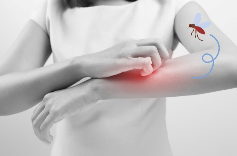모기에 물렸을 때 발생하는 알레르기 반응을 의미합니다.
