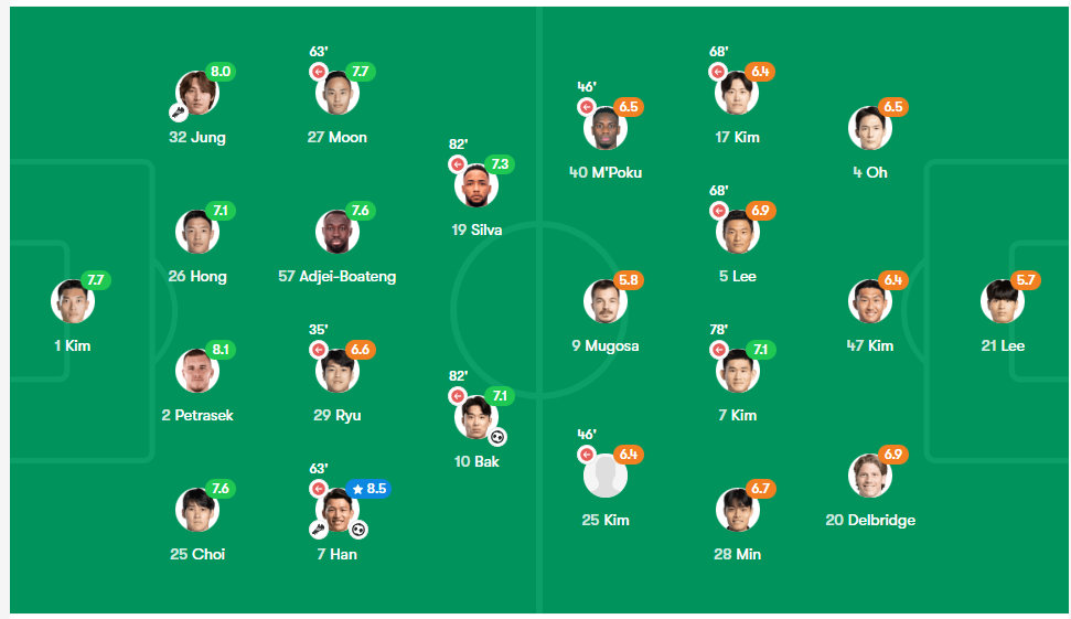 참고로, 후스코어드 닷컴에서 평점은 볼을 직접 가지고 있거나 볼을 가지고 있는 선수와 접촉하는 상황에 따라 정해집니다.