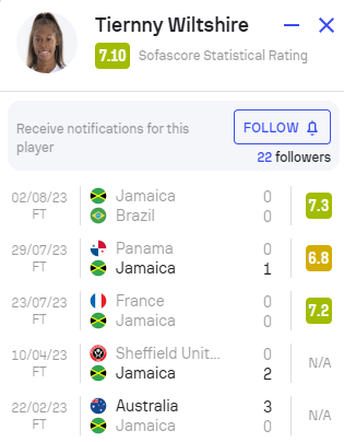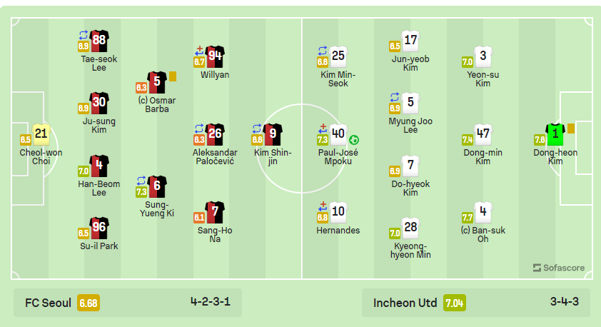 소파스코어는 선수들을 클릭하면 최근 경기에서의 평점까지 함께 볼 수 있어요.