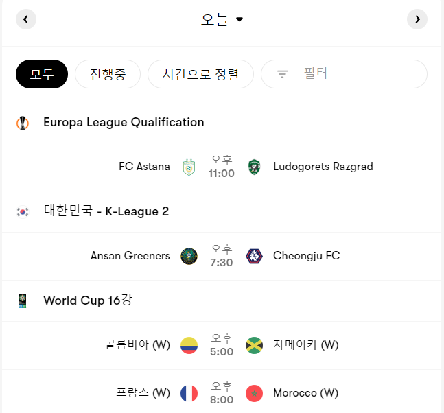 K리그는 물론, 거의 대부분의 경기 정보를 실시간으로 볼 수 있습니다.