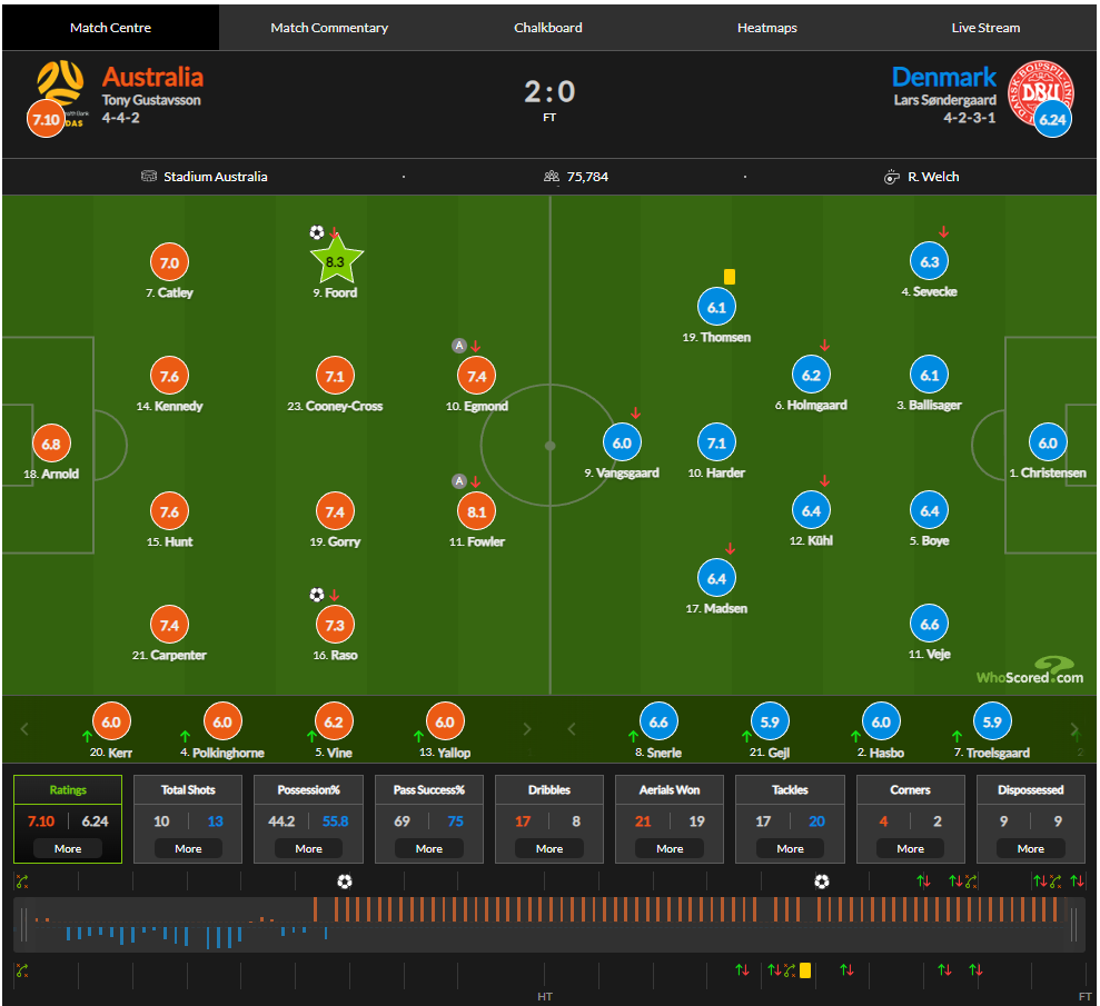 그중에서 내가 궁금한 경기의 Match Centre를 클릭하시면 평점 화면이 보여요.