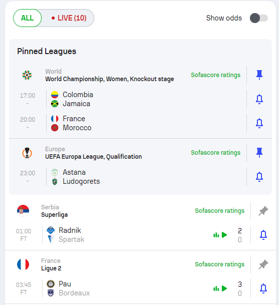 Live football results page on Sofascore offers real-time football scores of all live matches that are being played. Sofascore covers hundreds of soccer leagues, cups and tournaments with live updated results, statistics, league tables, video highlights and