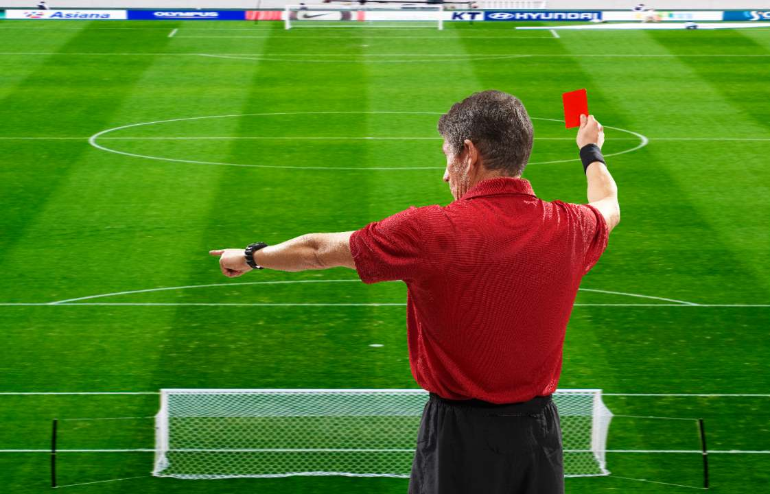 레드카드를 받으면 경기장 밖으로 나가야 합니다.