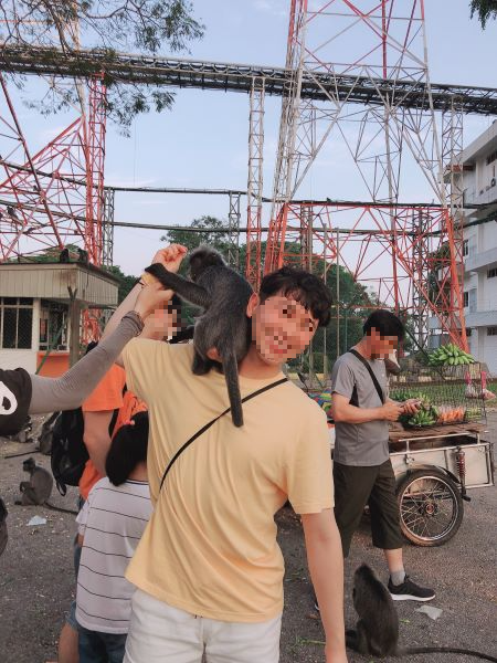 뒤로 보이는 철근 가득 앉아있는 원숭이들이 참 신기했습니다.