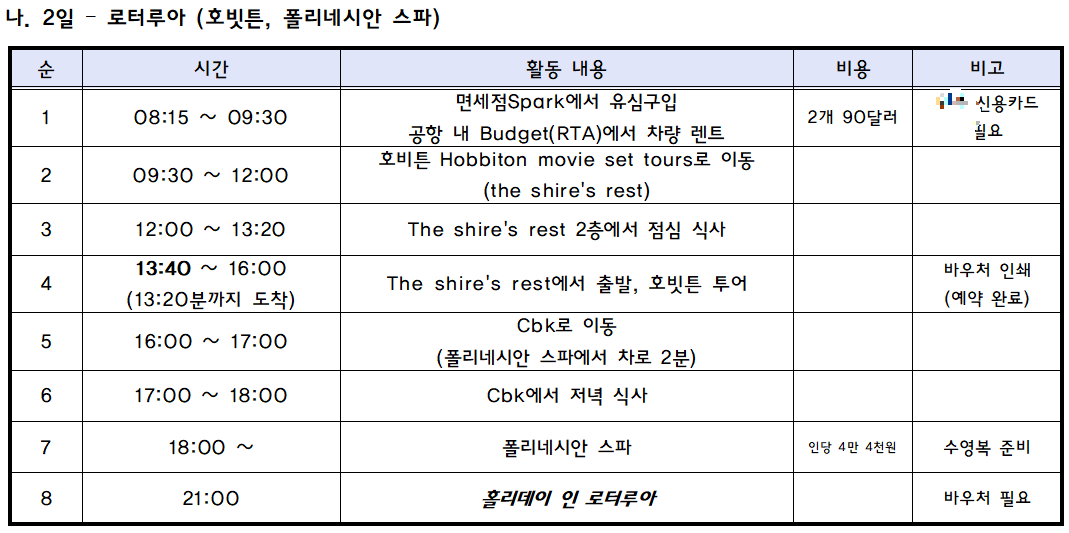 오늘 마지막 일정이 폴리네시안 스파였기 때문에