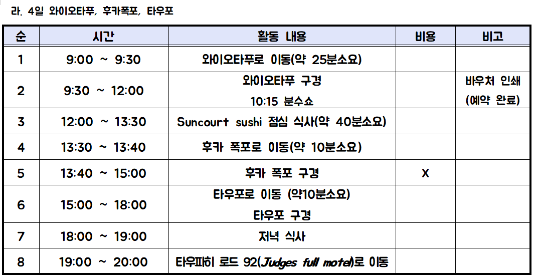 오늘은 북섬 와이오타푸, 후카폭포, 타우포호에 대해 포스팅해 보았어요.