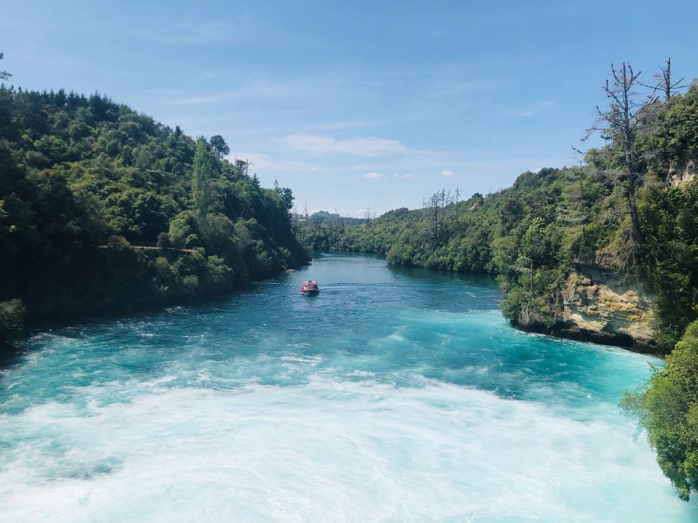 타우포에서 가장 많은 사람이 찾는 자연 명소인 후카 폭포에서 와이카토 강의 막강한 힘을 경험해 보세요.